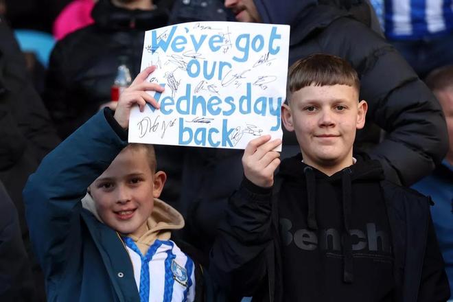 看台上坐满了成千上万名球迷,他们高唱“We’ve got our Wednesday back(我们夺回了我们的星期三)”,用行动宣告:这支百年老牌球队不会被遗弃。